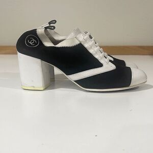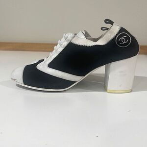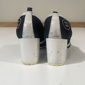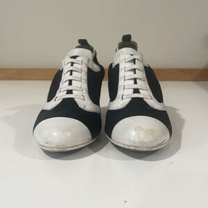 CHANEL Black Suede & White Leather Slip on Size 38.5.