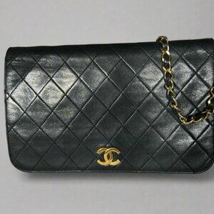 CHANEL Black Vintage CC Small Lambskin Single Flap Shoulder Bag