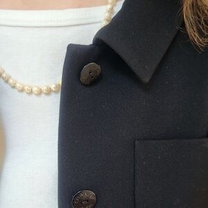A classic and elegant black Chanel wool pant suit with matching jacket and pants. (Size 36/US 6).