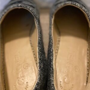 Chic CHANEL espadrilles with a stylish black and gray design. Perfect blend of comfort and elegance. Euro size 37. Im a US-7 and they fit perfect.