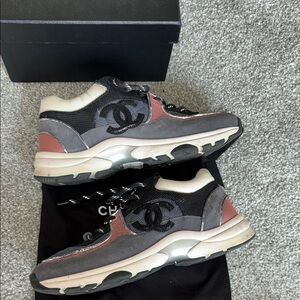 Elegant CHANEL athletic shoes in black and pink. Ideal for everyday style. 100 authentic comes with box dust bag and receipt needs cleaning and peeling women’s size 7.5