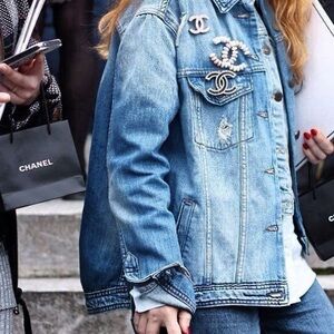 Sophisticated CHANEL brooch with black enamel and sparkling silver crystals. A luxurious accent for any ensemble. Take reasonable offers used but perfect condition exactly like photos
