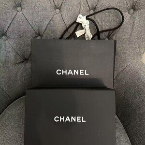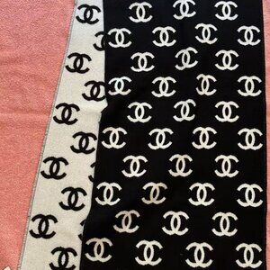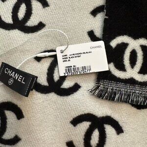 Chanel black and white logo wool scarf. New in box, sealed, with tag, and purchase receipt is available upon request.