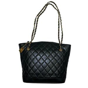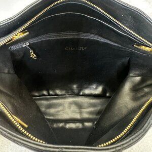 CHANEL Black lambskin Quilted Medium Matelassé Chain Tote/Shoulder Bag