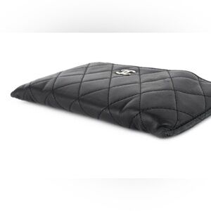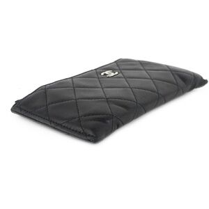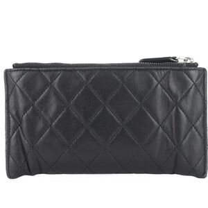CHANEL Black w Silver Accents Classic Zip Lambskin Leather Wallet Wristlet