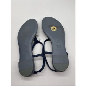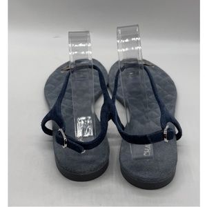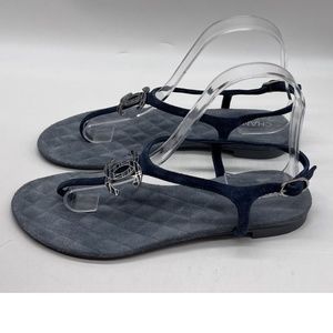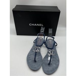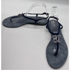 CHANEL Blue Suede Thong Sandal w/ Contrasting Blue CC Logo Charm sz 38.5C