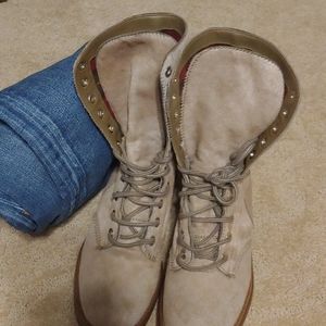 Chanel Pony lace up combat boots..2 tone ,stacked heel