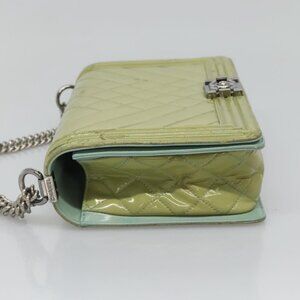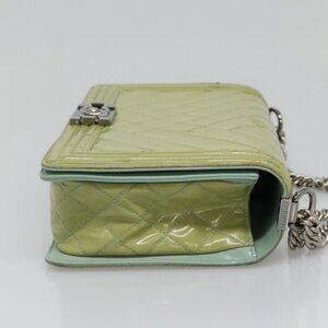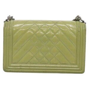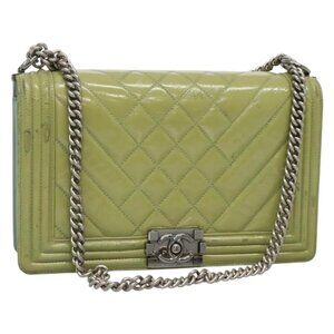 CHANEL Boy Chanel Chain Shoulder Bag Leather Green CC Auth