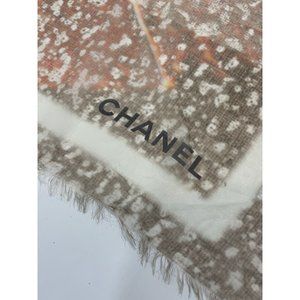 CHANEL Brown Logo Silk Scarf Wrap 52”/ 48” EC