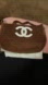 Elegant brown bag with iconic white Chanel logo. Perfect for any occasion.