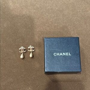 These exquisite CHANEL earrings showcase the brand's iconic elegance with a luxurious brushed gold color. The interlocked CC logo is beautifully complemented by a delicate pearl drop, creating a timeless and sophisticated look. Perfect for any occasion, these earrings are a testament to CHANEL's commitment to quality and style.