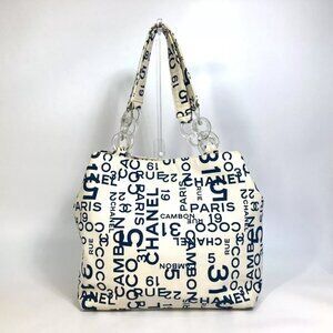 CHANEL By the Sea CC Mark Clear Chain Shoulder Tote Bag Canvas White x navy
