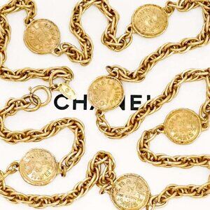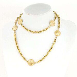 CHANEL CC 31 Rue Cambon Coin Necklace 36" Gold Tone Auth w/Box #22000