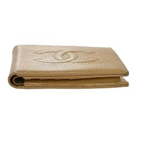 CHANEL CC Bifold Compact Wallet Grained Calfskin Leather Beige France 62KB036