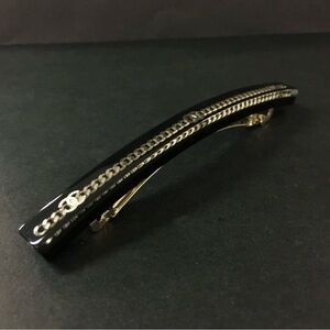 CHANEL CC Black Barrette with Gold Chain Accent