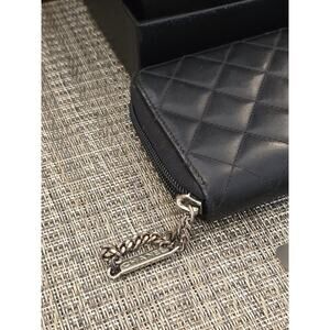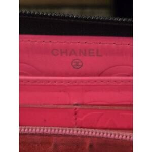 CHANEL CC Cambon Long Zipper Bifold Wallet Patent Leather Black SHW