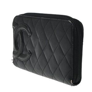 CHANEL CC Cambon Long Zipper Bifold Wallet Patent Leather Black SHW