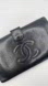 Classic CC caviar long wallet in black by Chanel. 7 card slots, 2 larger slots, and 1 bill slot. Kiss lock coin pocket. Looks great with a chain that will convert wallet into a crossbody.