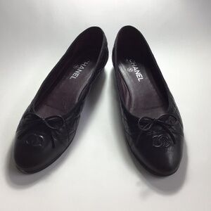 CHANEL CC LOGO BLACK QUILTED LEATHER CLASSIC CAP FLATS SHOES SLIPPER 40