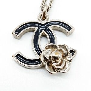 CHANEL CC LOGO NECKLACE 16” Silver tone