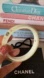 This amazing piece of jewelry, although simple, is elegant to its core. Crafted from clear and white resin, it features the iconic CC logo in silver-tone on a black background and 2 rhinestones placed on its right and left.