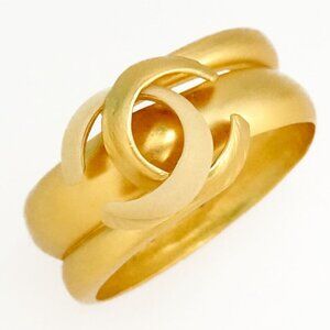 CHANEL CC Logo Bicolor Wide Bangle Bracelet 8" Gold Tone 00T Auth w/Box #22300
