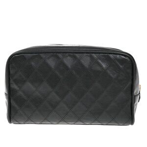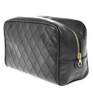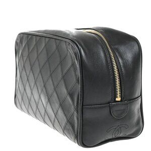 CHANEL CC Logo Bicolore Vanity Bag Pouch Leather Black GHW Italy