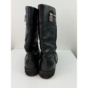 CHANEL CC Logo Black Leather Quilted Boot Zipper Motorcycle Biker Iconic 41 RARE