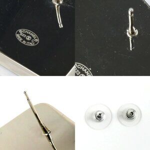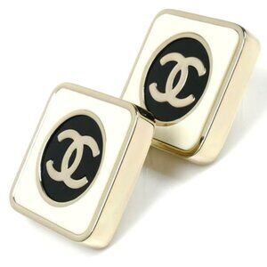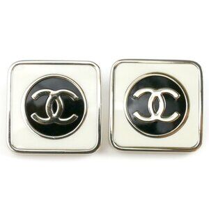 CHANEL CC Logo Black White Square Stud Earrings Silver Tone B23C Auth