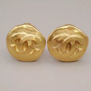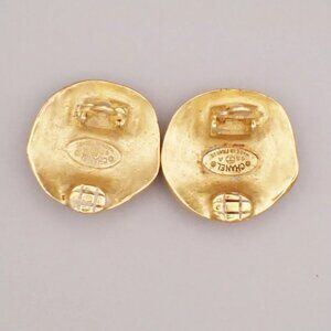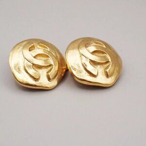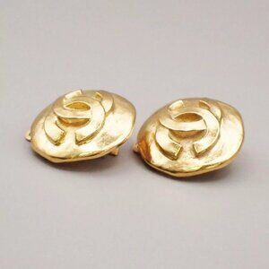 CHANEL CC Logo Button Earrings 95A Clip-On Gold France Vintage 34RK706