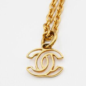 CHANEL CC Logo Chain Necklace Pendant GHW Gold France Vintage 76RL432