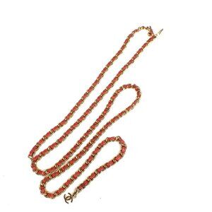 CHANEL CC Logo Charm Chain Belt 01S Leather Red Gold France Accessory