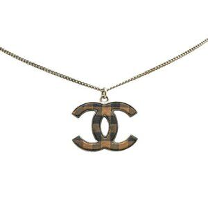 CHANEL CC Logo Checkered plaid Necklace 24" Silver Tone B11C Auth #3463
