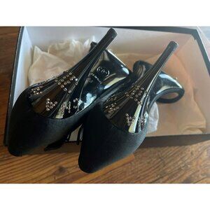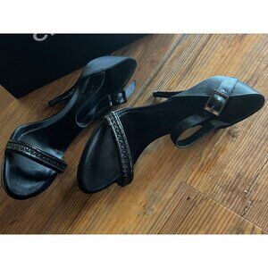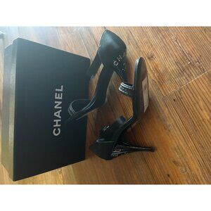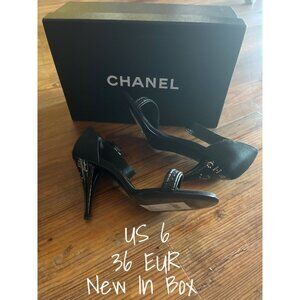 CHANEL CC Logo Crystal Black Heels Sandals 36 - New in Box