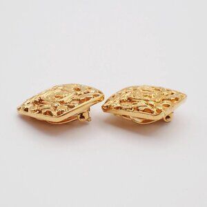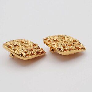 CHANEL CC Logo Diamond Shape Earrings Clip-On Gold GHW France 34KP109