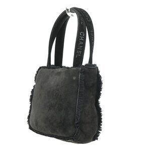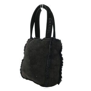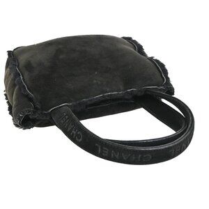 CHANEL CC Logo Hand Bag Suede Shearling Fur Black GHW France 34KA824