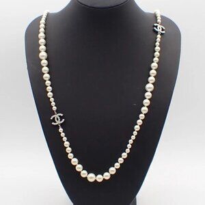 CHANEL CC Logo Imitation Pearl Chain Necklace A12 W White SHW