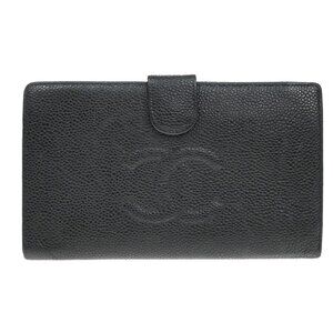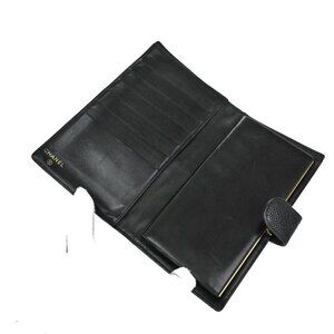 CHANEL CC Logo Long Bifold Wallet Grained Calfskin Leather Black France 79RF546