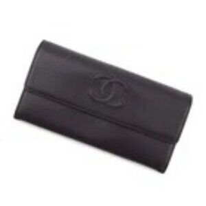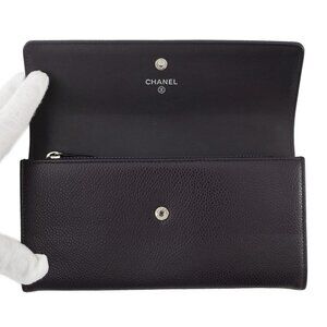 CHANEL CC Logo Long Flap Wallet Calfskin Purple