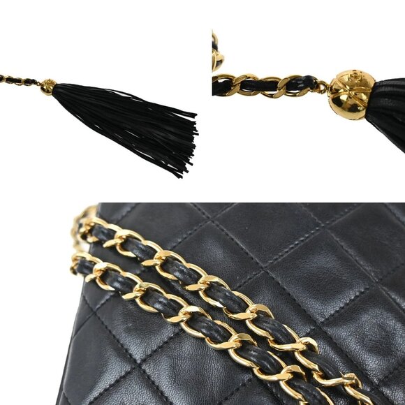 CHANEL CC Logo Matelasse Tassel Chain Shoulder Bag Leather Black GHW 342RL389
