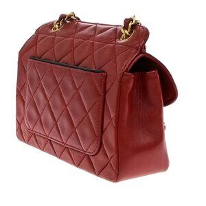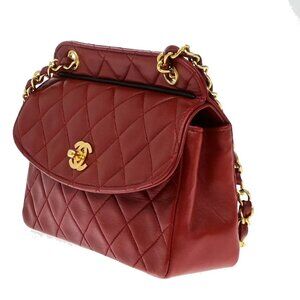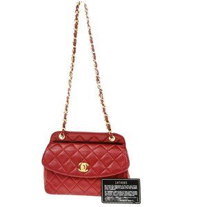 CHANEL CC Logo Mini Matelasse Chain Shoulder Bag Leather Red Vintage