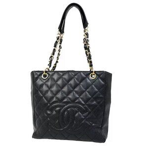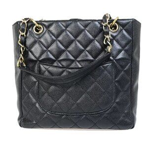 CHANEL CC Logo PST Chain Shoulder Bag Grained Calfskin Leather authentic