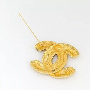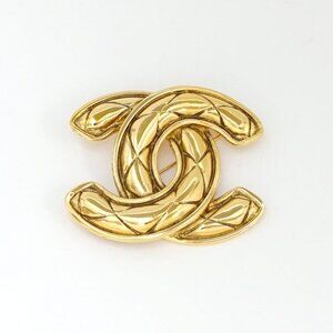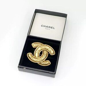 CHANEL CC Logo Quilted Matelasse Brooch Gold Tone Pin Auth w/Box #22400