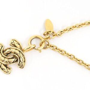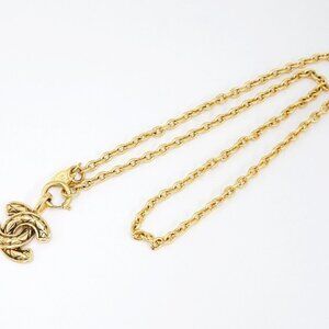 CHANEL CC Logo Quilted Matelasse Necklace 21" Gold Tone Auth l1090