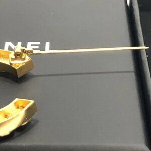 CHANEL CC Logo Rhinestone Brooch Gold Tone Pin