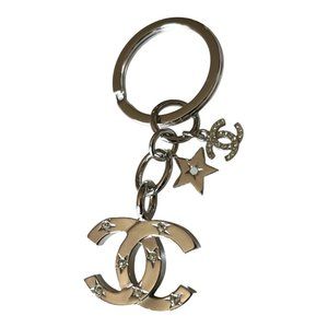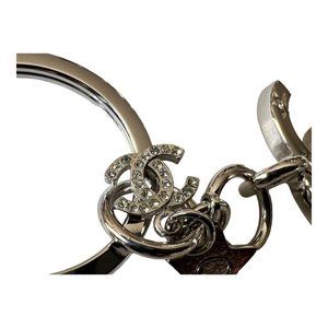 CHANEL CC Logo Rhinestone Silver Tone Key Ring