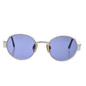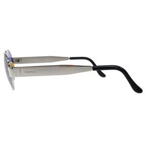 CHANEL CC Logo Sunglasses Eye Wear 06933 Metal Plastic Silver Blue Italy 63RF644