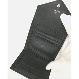 CHANEL CC Logo V Stitch Leather Trifold Wallet