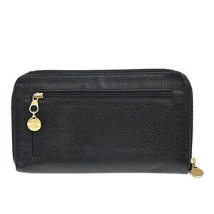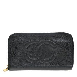 CHANEL CC Logo Zipper Long Wallet Grained Calfskin Leather Black Vintage