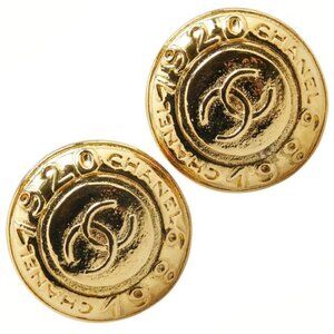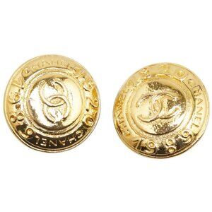 CHANEL CC Logos 1989 1920 Round Clip-On Earrings Gold Tone Auth w/Box #4056